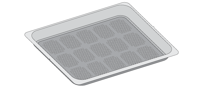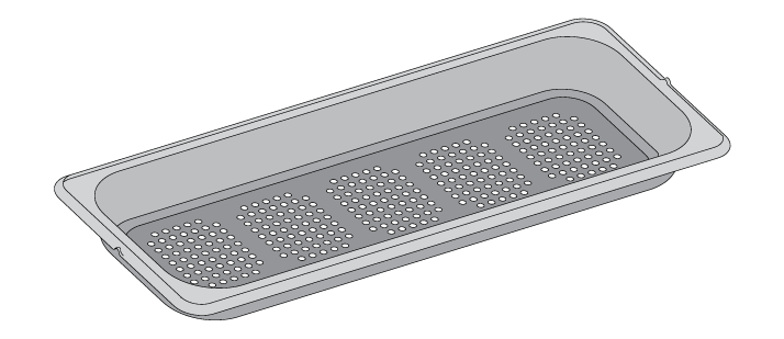 Buharlı pişirmeler için uygundur. Delikli tepsiler yoğuşan veya gıdadan akan suyu tahliye etmek için uygundur.
