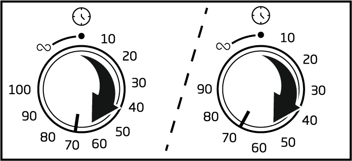 - По окончании запекания выключите духовку, повернув ручку выбора функции и регулятор температуры в положение выключения (вверх). Если вы хотите продолжить, еще раз поверните ручку таймера на определенное время запекания. Духовка продолжит работать при заданной функции и температуре.