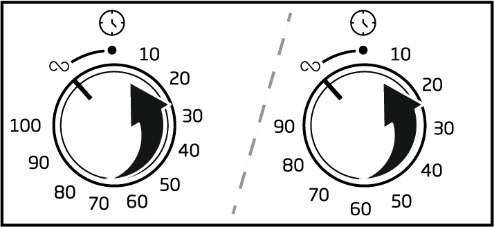 - Поверните ручку таймера в сторону символа