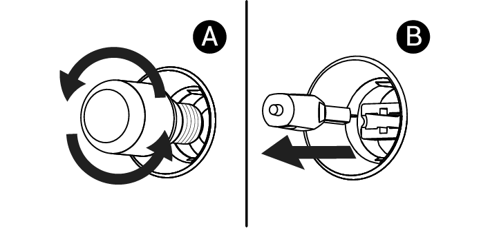- Если лампа духовки типа (A), как показано на рисунке ниже, поверните лампу духовки так, как указано на рисунке, и замените ее новой. Если это лампа типа (B), вытащите ее, как показано на рисунке, и замените ее новой.