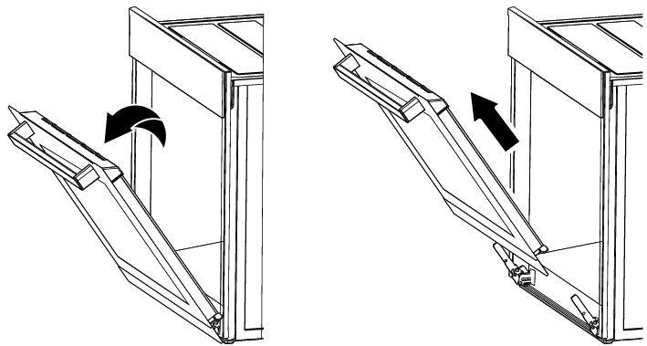- Потяните снятую дверцу вверх, чтобы освободить ее от правой и левой петель, а затем снимите ее.