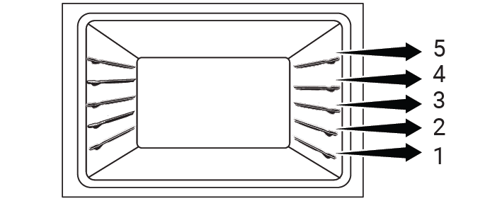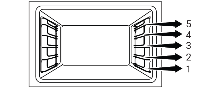 В зоне приготовления есть 5 уровней расположения противня. Вы также можете увидеть порядок расположения уровней в цифрах на передней раме духовки.