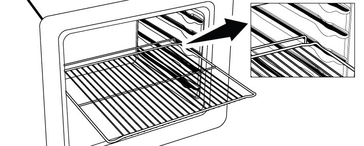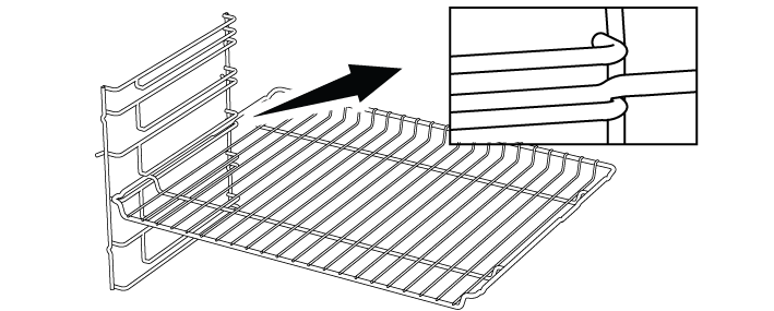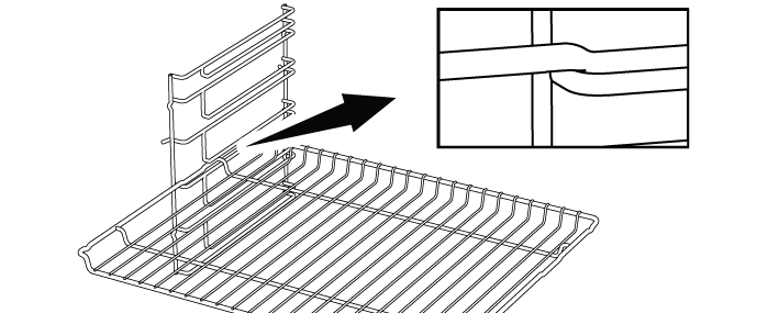 Очень важно правильно размещать решетчатый гриль на боковых металлическими направляющими. При размещении решетки на нужном уровне открытая часть должна быть спереди. Для лучшего приготовления пищи решетка должна быть закреплена стопором на металлических направляющих. Она не должна проходить через ограничитель и контактировать с задней стенкой духовки.