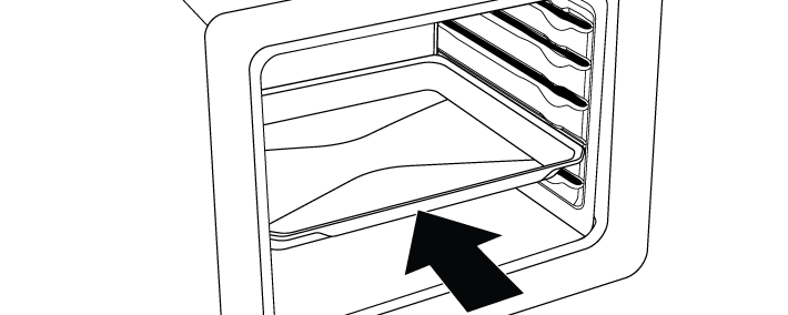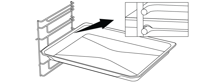 Также важно размещать противни на рельефных направляющих. При размещении противня на нужном уровне его сторона, предназначенная для удержания, должна быть спереди. Для лучшего приготовления противень должен быть закреплен стопором на металлических направляющих. Он не должен проходить через ограничитель и контактировать с задней стенкой духовки.