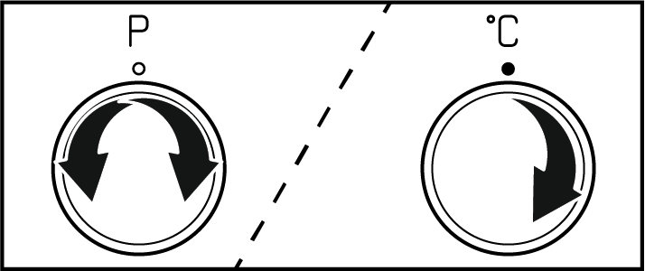 When you select a operating function you want to cook with the function selection knob and set a certain temperature with the temperature knob, the oven starts operating.