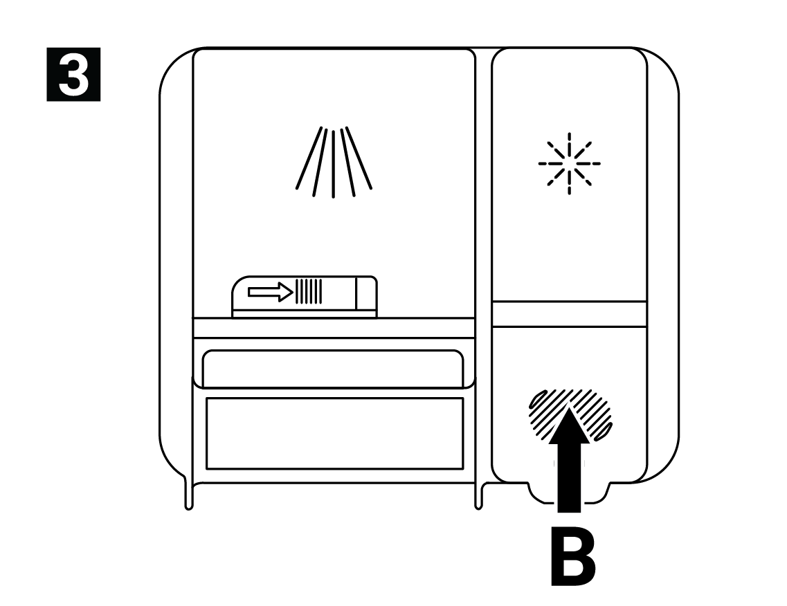 - Bölmenin kapağını (B) noktasına hafifçe bastırarak kapatın.