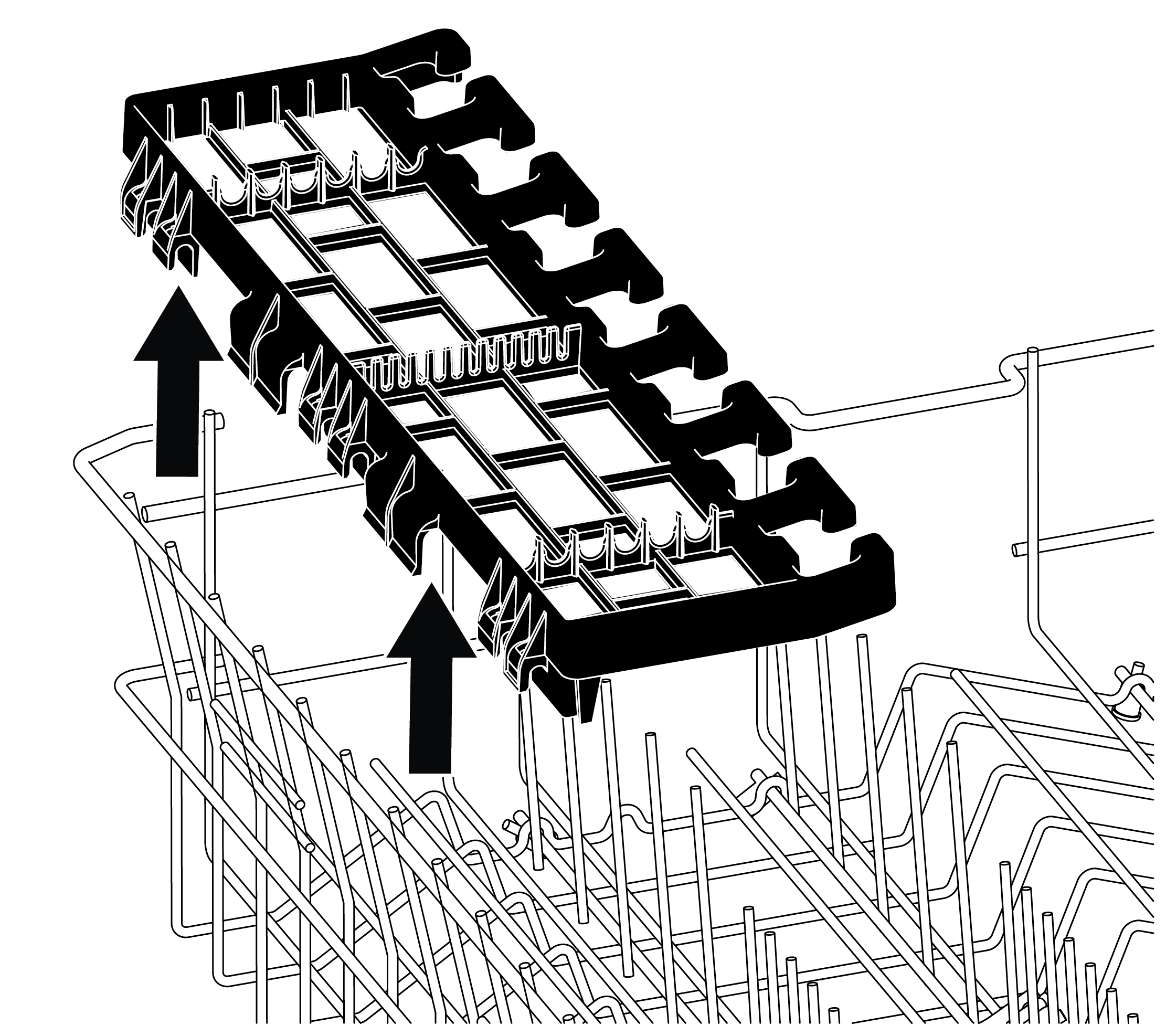 Makinenizin üst sepetinde yer alan üst sepet çok amaçlı servis rafı sayesinde uzun servis ve mutfak gereçleri rahatlıkla yüklenip yıkanabilir. Ayrıca bu aksesuarın ön kısmında yer alan kadeh ayağı sabitleme bölümleri uygun boyuttaki kadehlerin üst sepete daha kolay yerleştirilmesinde yardımcı olur.