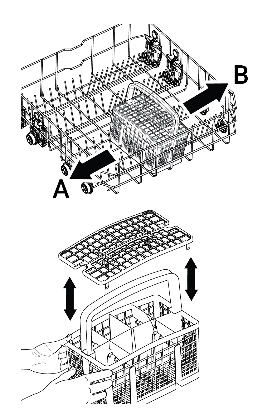 Çatal-kaşık sepetinin hareket etme (A, B) özelliği sayesinde alt sepete bulaşıklarınızı yerleştirirken, daha geniş alanlar yaratabilir, farklı ebatlardaki bulaşıklarınıza yer açabilirsiniz.