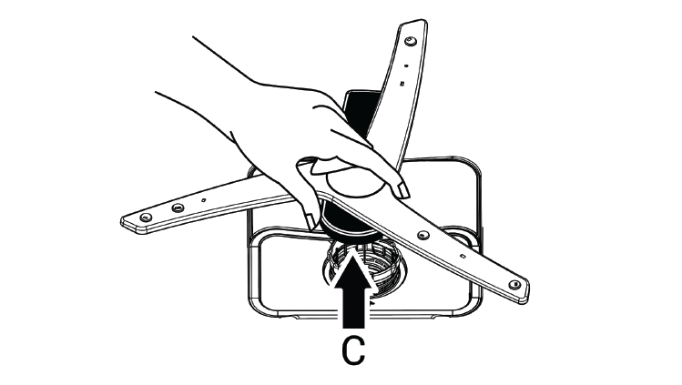 Alt pervane grubunu birlikte söküp temizlemek için şekilde gösterilen (C) noktalarından tek elle tutarak yukarı doğru çekerek çıkartın. Temizlik işleminden sonra aynı işlemleri tersten uygulayarak pervane grubunu yerine takın.
