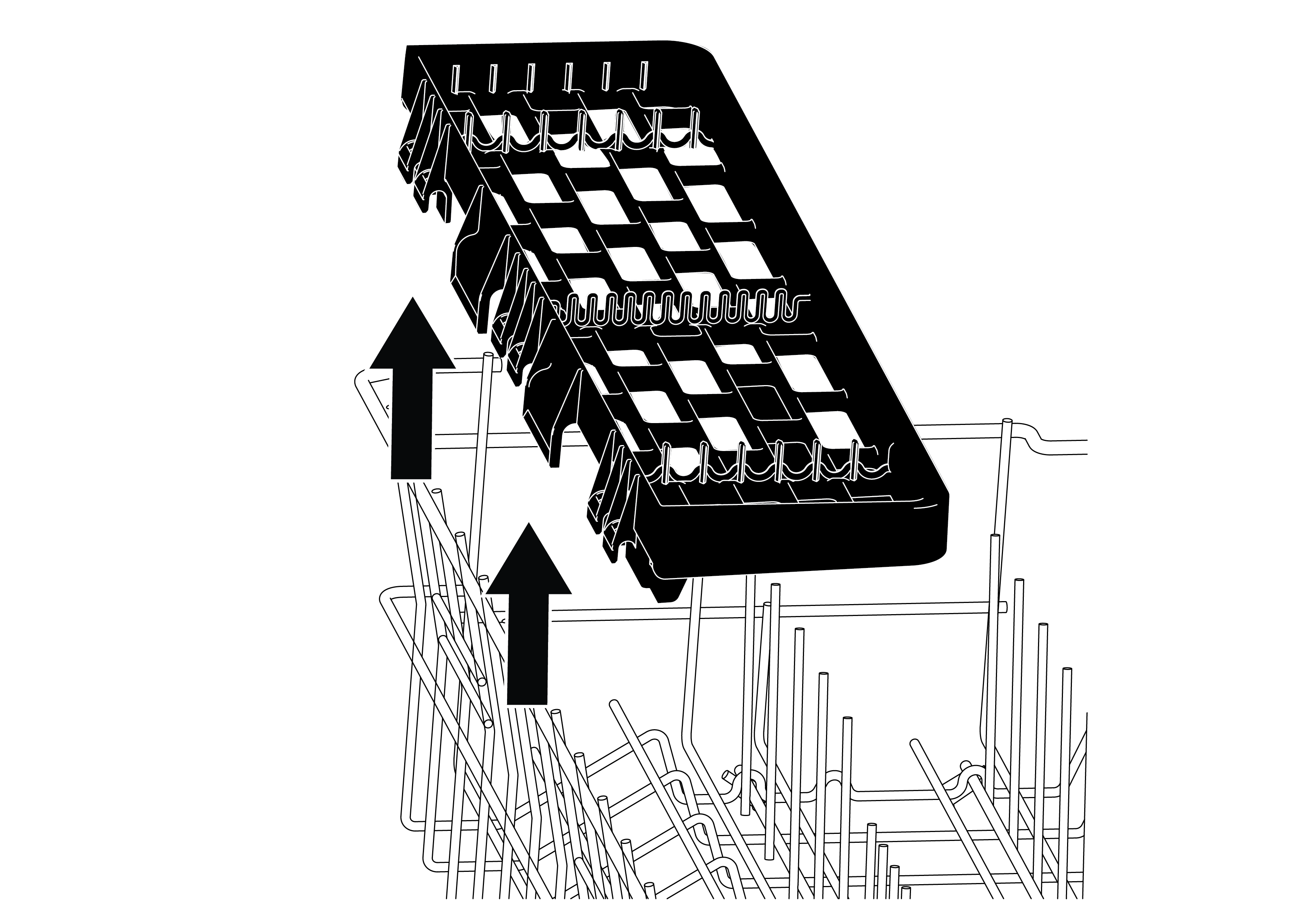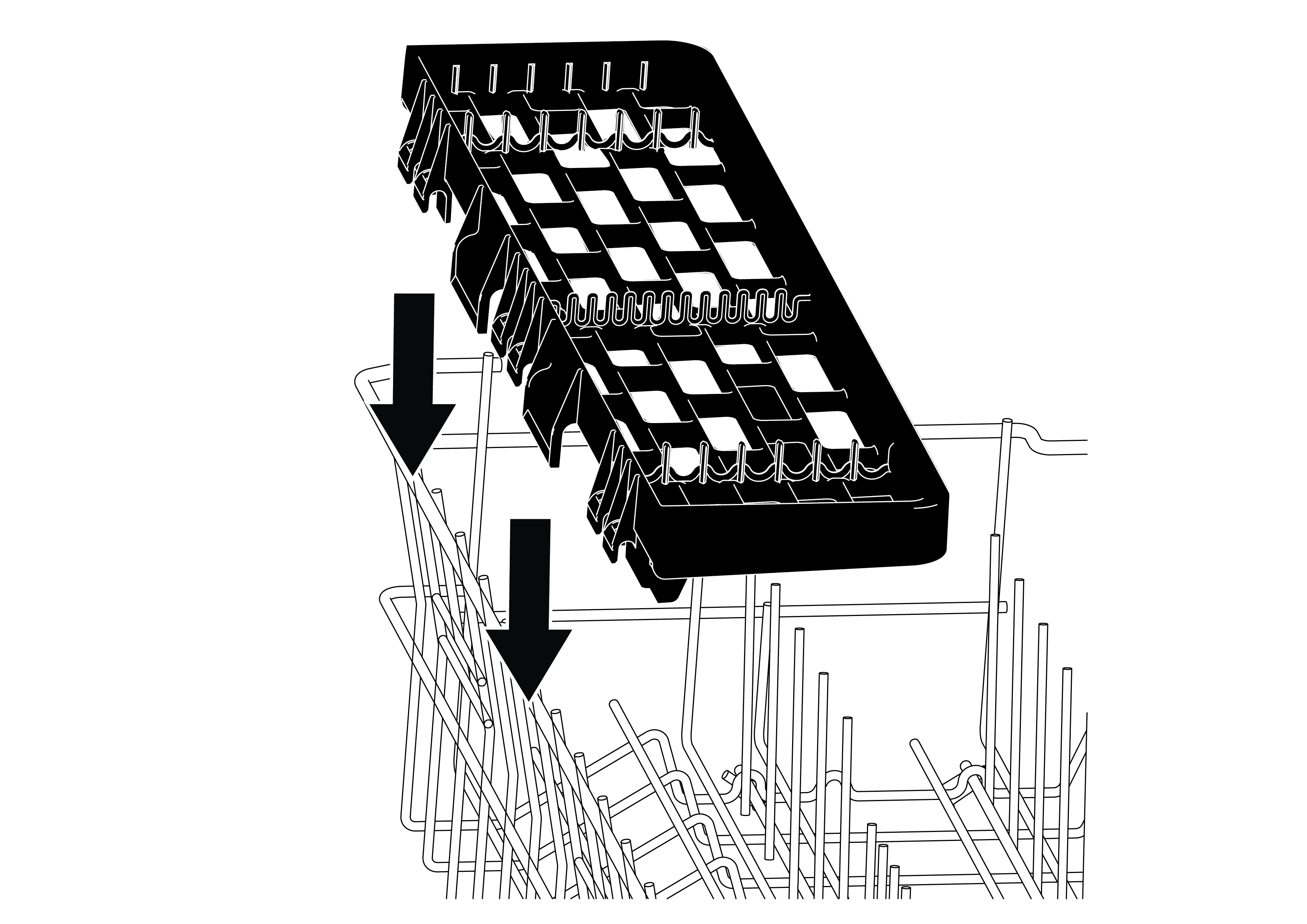 Makinenizin üst sepetinde yer alan bu aksesuar sayesinde uzun kepçe, ekmek bıçağı gibi parçaları rahatlıkla yıkayabilirsiniz.