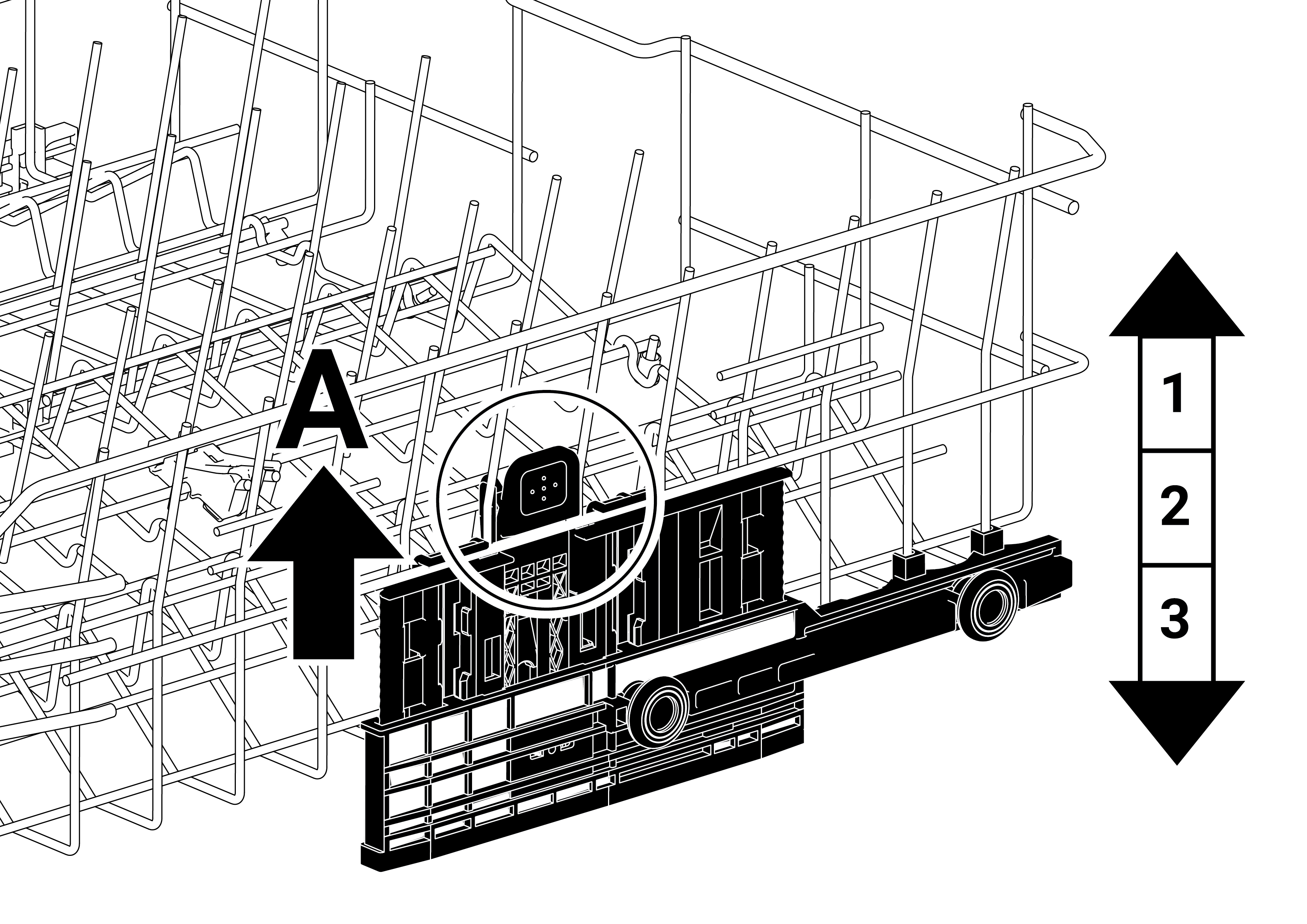 - Sepetinizi yükseltmek için sepet en alt konumda iken üst sepet tellerini iki elinizle tutarak yukarıya doğru çekin (A)