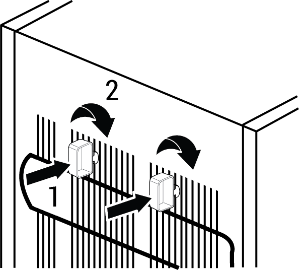 Ürünle duvar arasındaki hava dolaşımını sağlayacak mesafeyi korumak için ürün içerisinden çıkan plastik takozlar kullanılmaktadır. 2 adet plastik takozu aşağıdaki şekilde görüldüğü gibi takınız.
