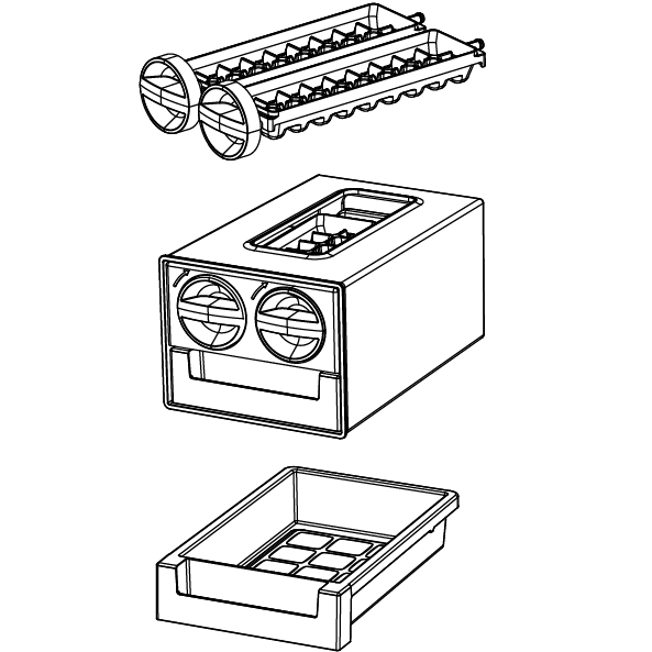 - Su tankını yerine takın. İlk buzlar yaklaşık dört saat içinde dondurucu bölmedeki buz makinesi çekmecesinde hazır olacaktır.