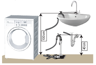 - Connect the drain hose to a minimum height of 40 cm and a maximum height of 100 cm.