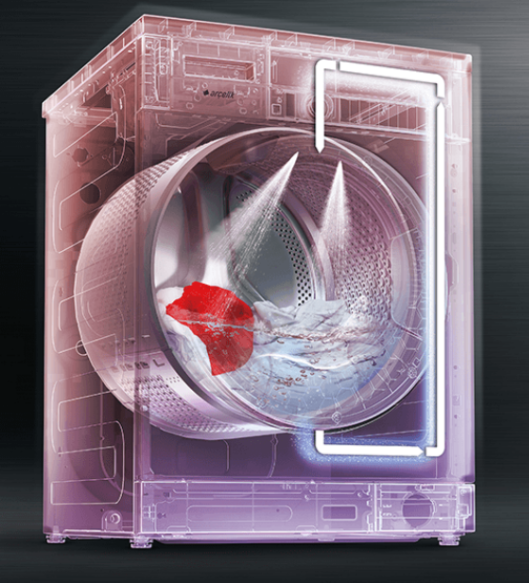 Çiftli su jeti sistemi, deterjanlı suyu çamaşırlara daha hızlı püskürtür, normal yıkamaya göre çok daha etkin ve üstün temizlik sağlar.